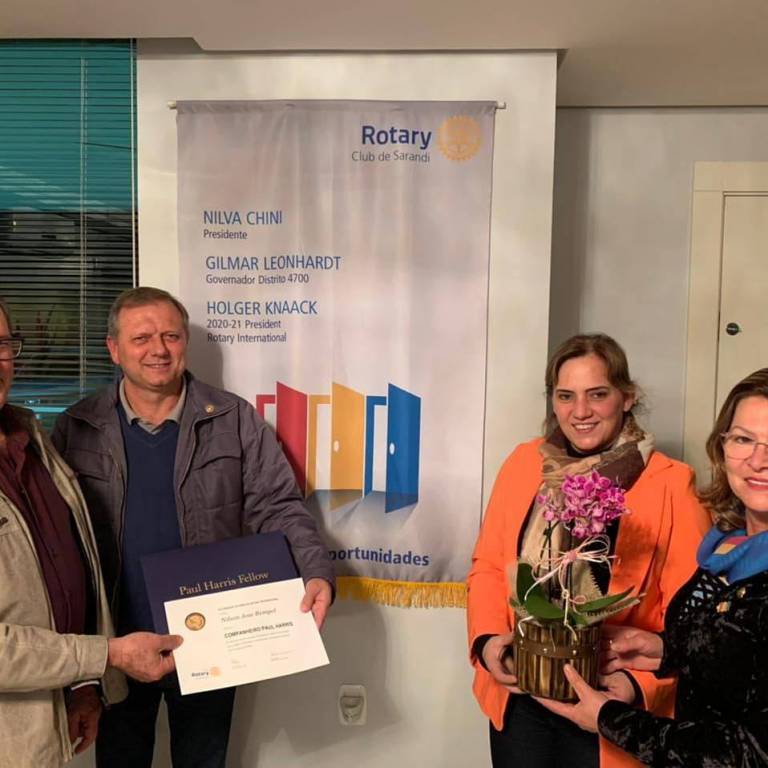 No dia 06 de maio de 2021, através de uma reunião festiva via Zoom, foram recebidos os mais novos companheiros empossados em Rotary pelo presidente do Rotary Internacional Holger knaack no dia 03 de maio durante o Grande Evento Nacional de admissão de novos Rotarianos onde foram empossados 2.305 novos companheiros em um Mega Evento virtual. Os novos companheiros empossados foram Nilva Calza, Hélvio Debona, Marcela Barbosa Schafer, Ricardo Mattei Chini e Kelen Christiane Mattei Chini. Na oportunidade estavam presentes a presidente do clube Nilva Chini, alguns convidados e demais companheiros do clube. Nesta mesma noite também tivemos a entrega de 1título a Nilson Rempel, através da Rembecker, providente de doações a Fundação Rotaria que financia projetos no mundo inteiro, um exemplo é o ultrassom doado ao nosso hospital Comunitário, também recebeu um título a companheira da Casa da Amizade, Milena Rosa Rosin, pelo reconhecimento aos serviços prestados junto a Casa da Amizade. Na sequência a companheira governadora 1998-99, Adélia A. Villas do distrito do Rio de Janeiro , contemplou-nos com a palestra sobre a vida do fundador do Rotary Internacional Paul Harris. Foi uma noite especial. Parabéns aos agraciados pelos títulos Paul Harris e aos novos companheiros desejamos boas vindas ao nosso Clube!