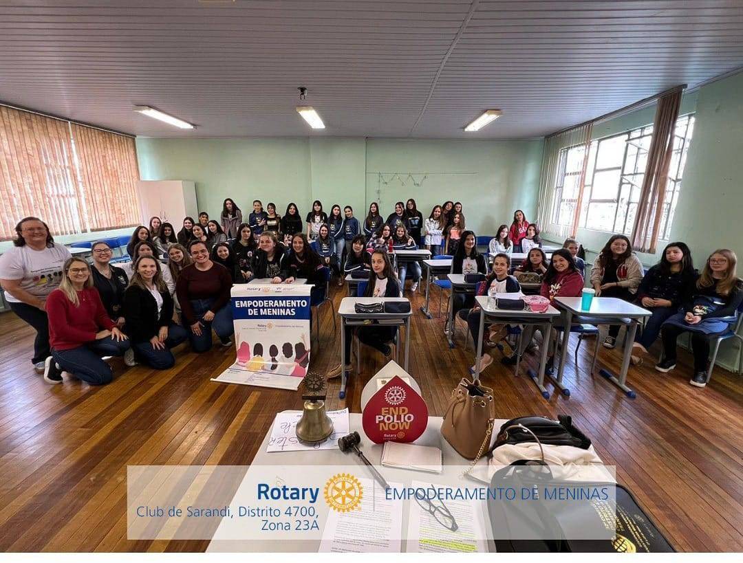 Os companheiros do Rotary Club de Sarandi fizeram a abertura, onde cada um se apresentou e explicou um pouco sobre o projeto. Além disso, foi explicado também sobre o projeto da poliomielite e a importância da vacinação com vídeos e imagens e também explicado um pouco sobre o Rotary através de um teatro, onde as próprias meninas encenaram como o Rotary iniciou, contando um pouquinho da sua história.