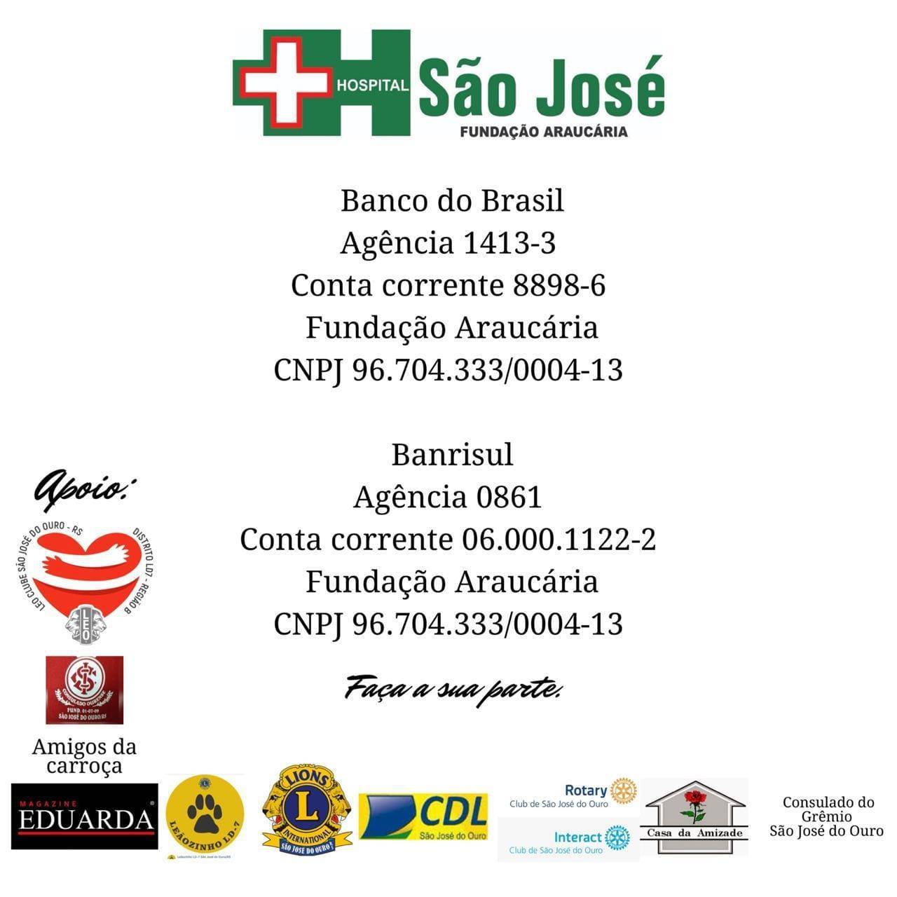O Rotary Club de São José do Ouro junto com a Casa da Amizade, Lions  Clube e outras Entidades esão promovendo campanha de arrecadação de recursos para equipar o Hospital São José com respiradores, leitos e equipamentos de proteção para os Profissionais de saúde do Município.